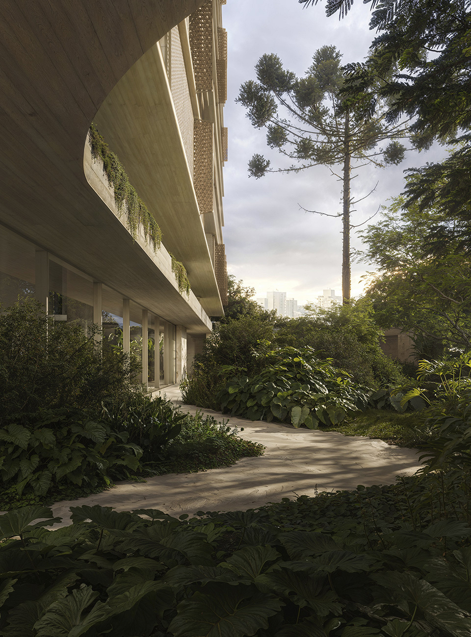 Integrado à arquitetura, o paisagismo compõe núcleos de bem-estar, mindfullness e lazer, onde o verde predomina e evoca o essencial.