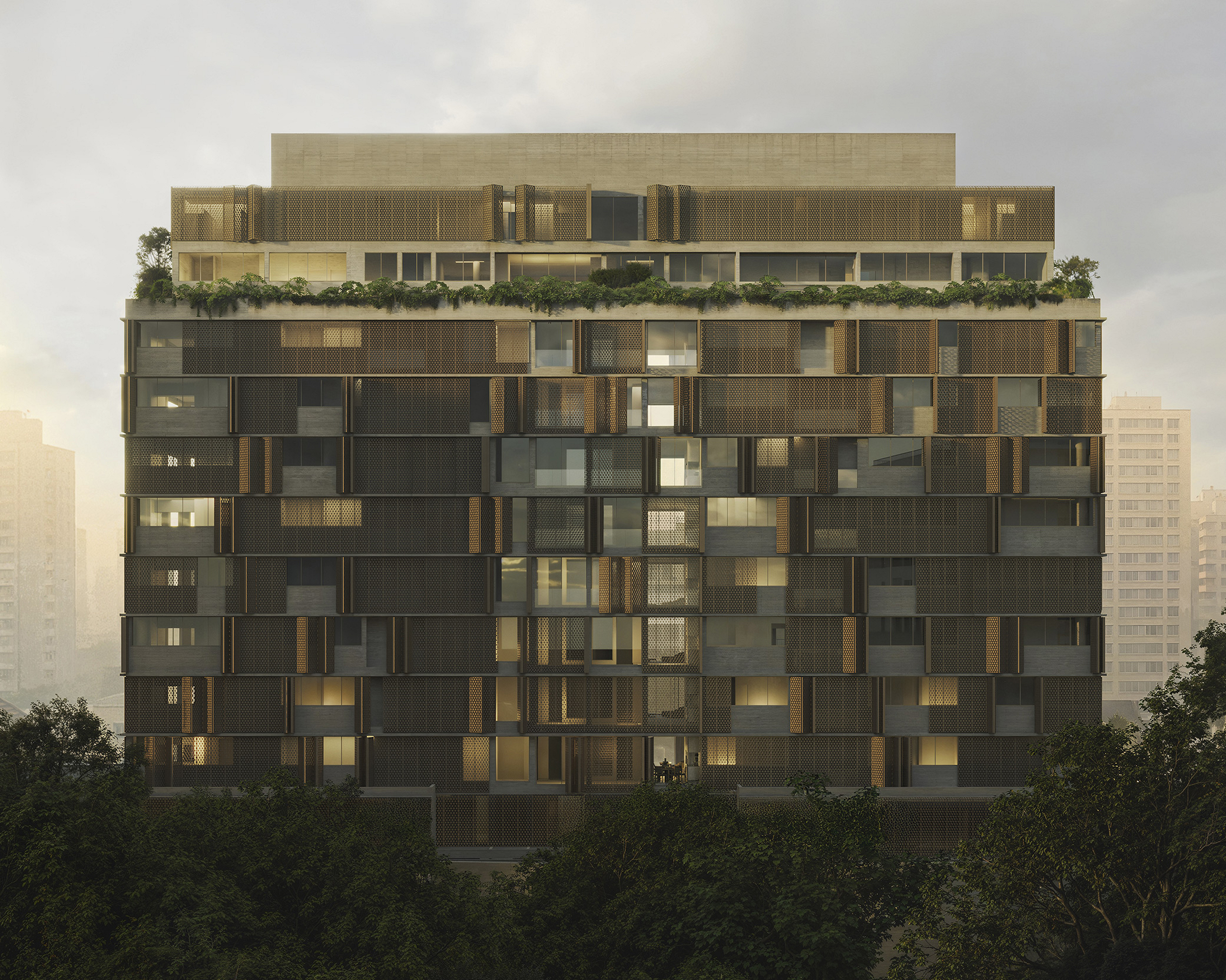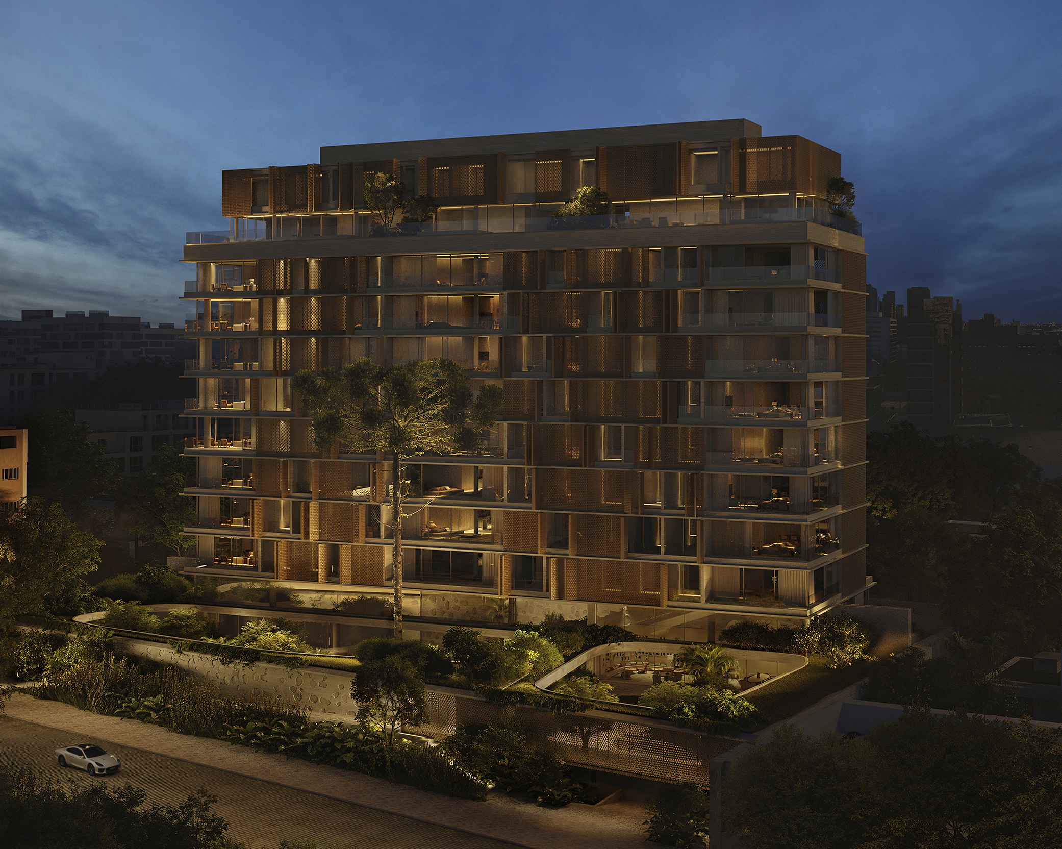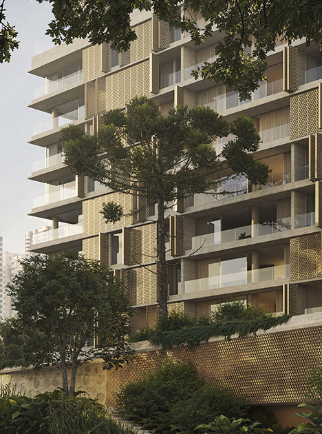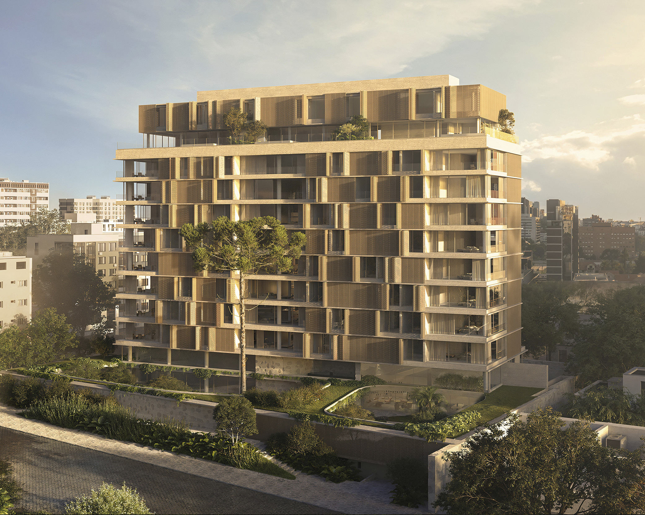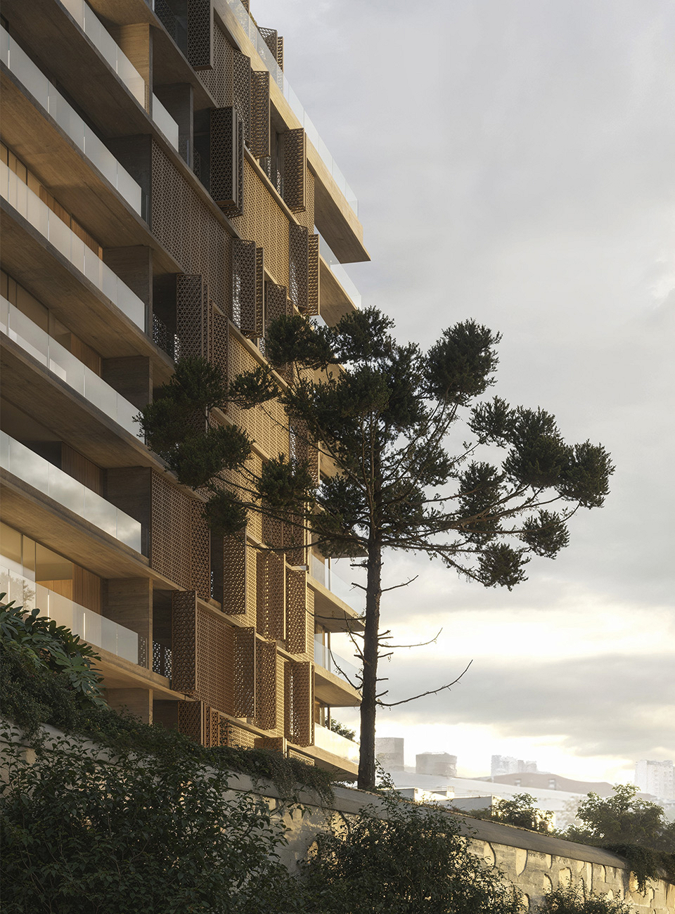 Desenhada em modo angulado para receber o esplendor da luz matinal, a torre é revestida por brises criados por Arthur Casas, exclusivamente para o projeto.