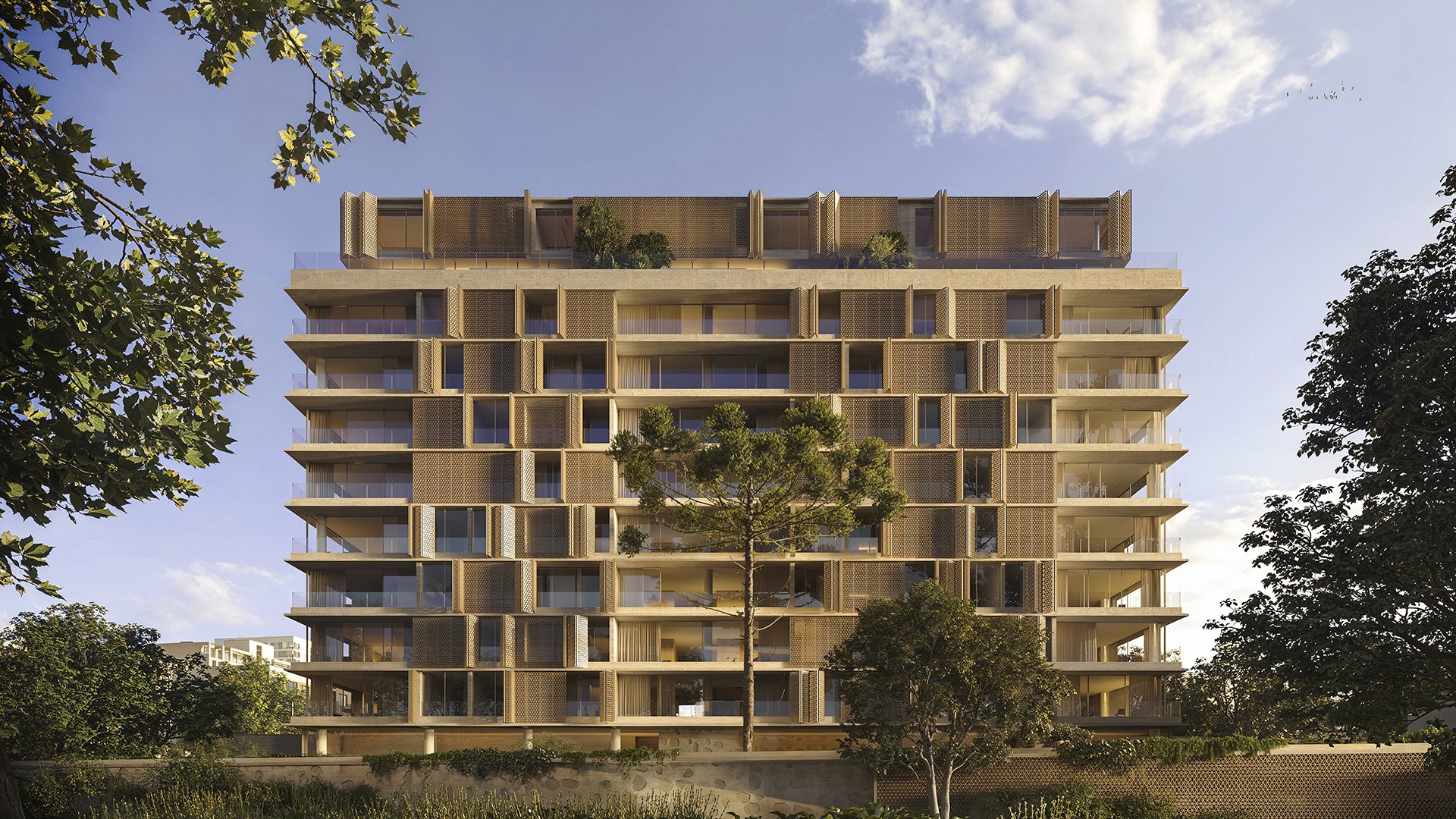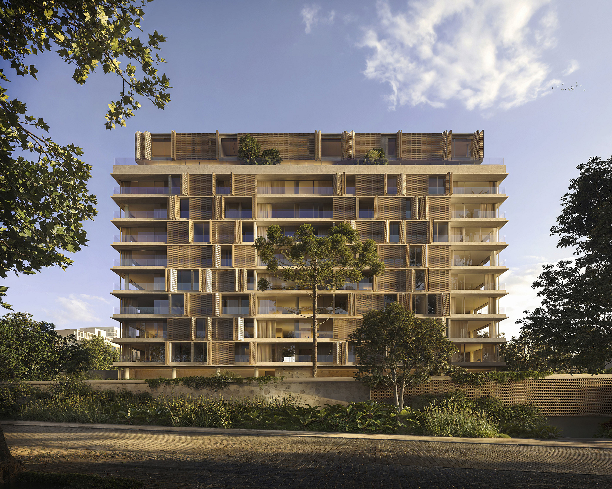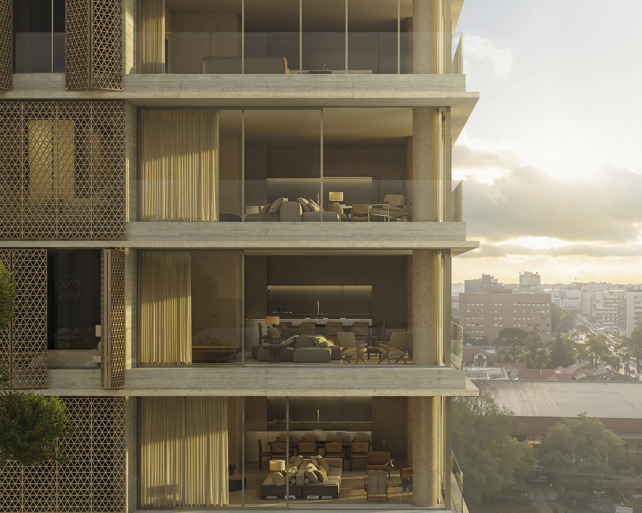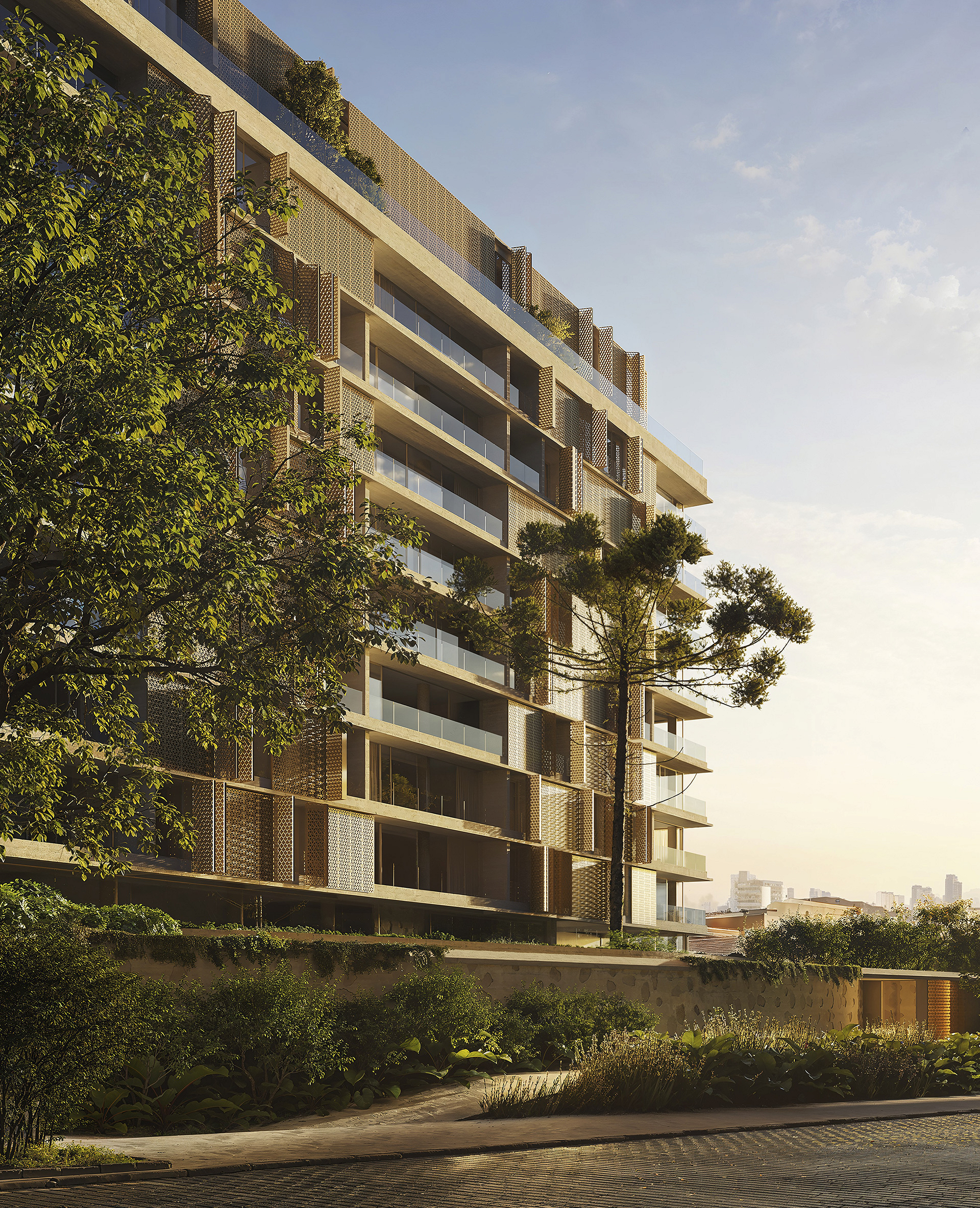 Desenhada em modo angulado para receber o esplendor da luz matinal, a torre é revestida por brises criados por Arthur Casas, exclusivamente para o projeto.