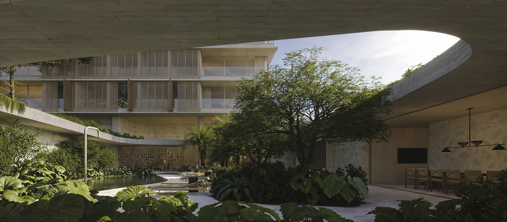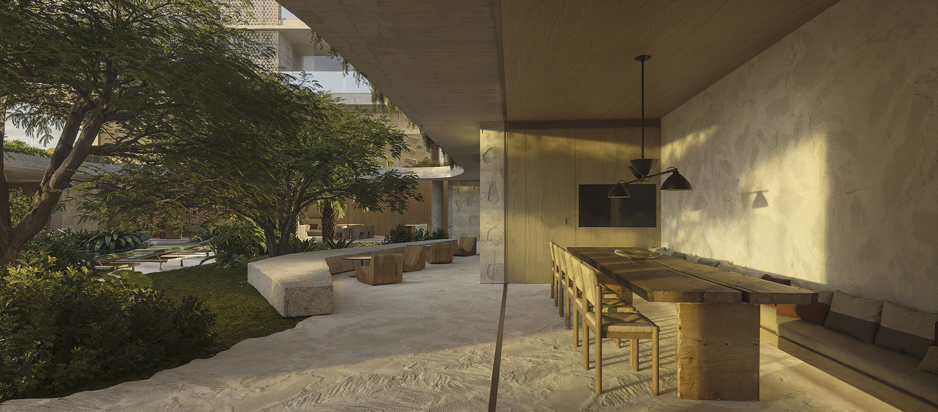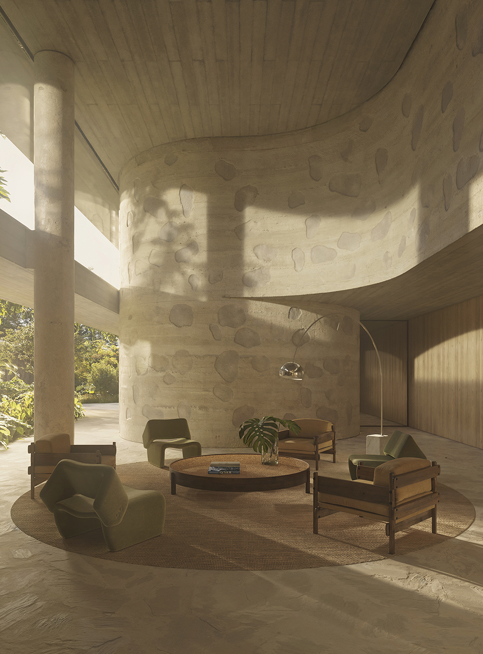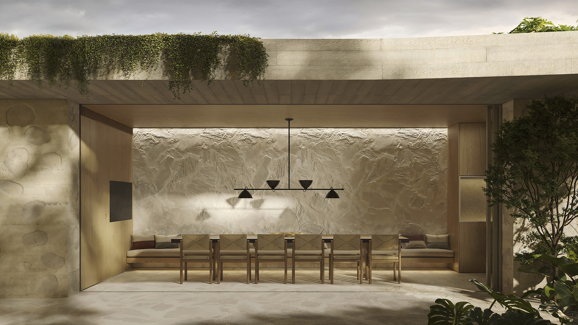 Arthur Casas explora o concreto, a luz natural e os materiais orgânicos em um projeto de interiores onde o essencialismo amanhece.