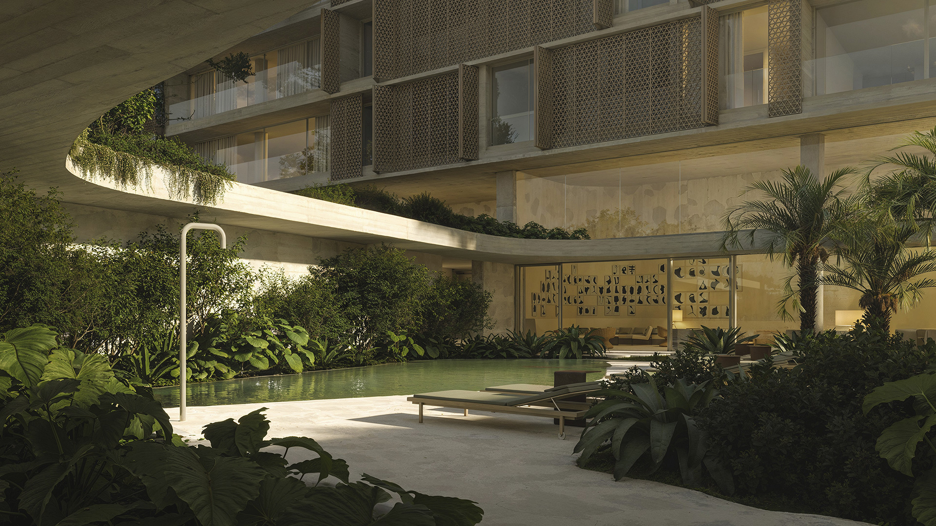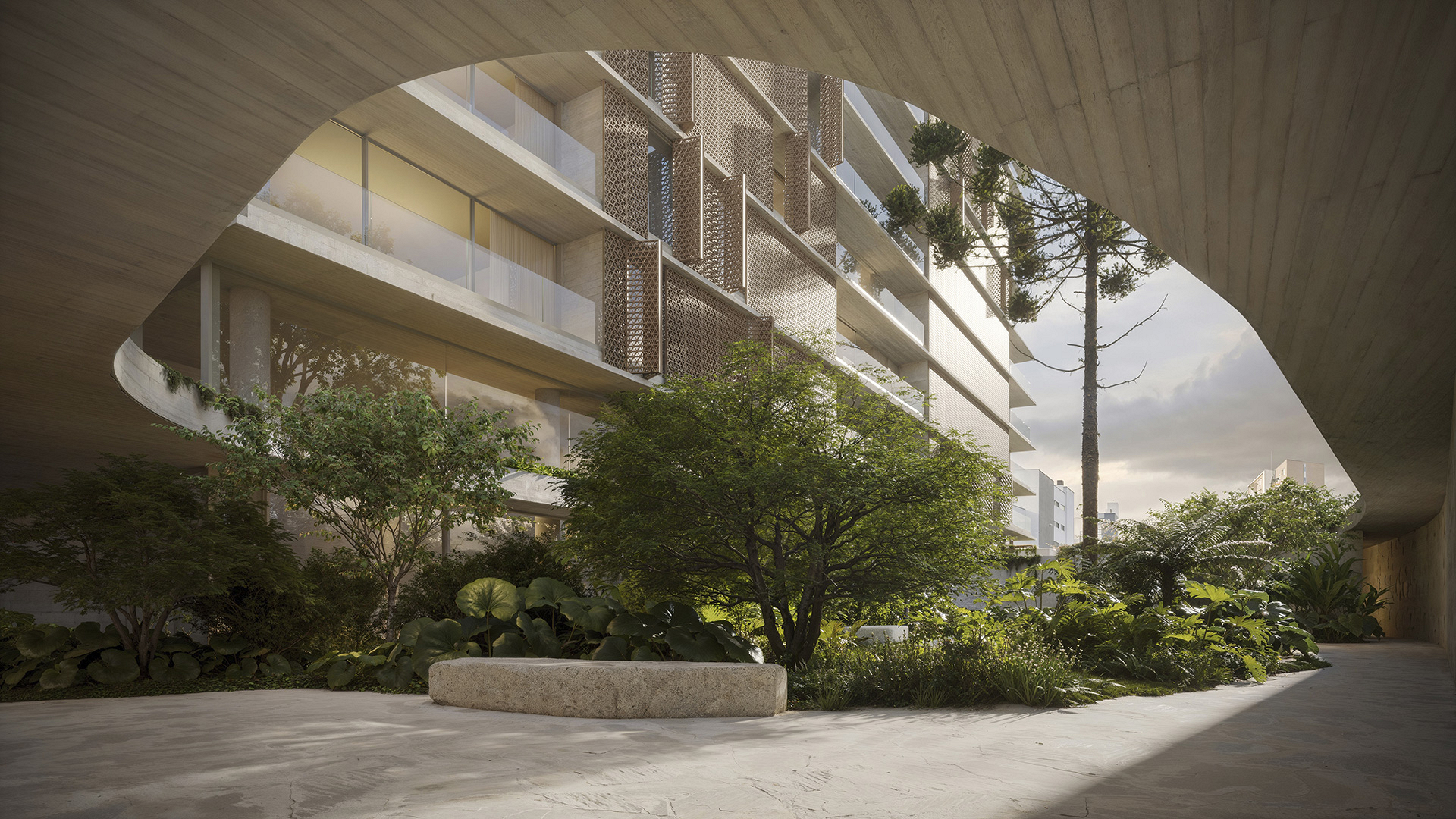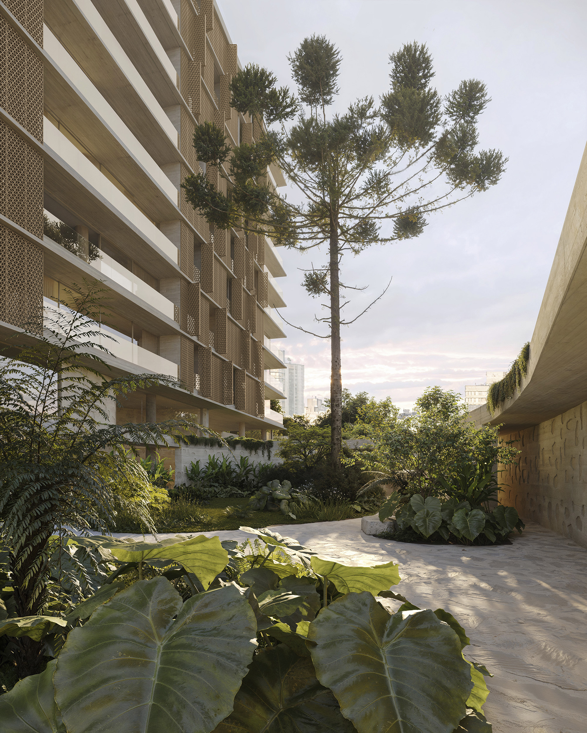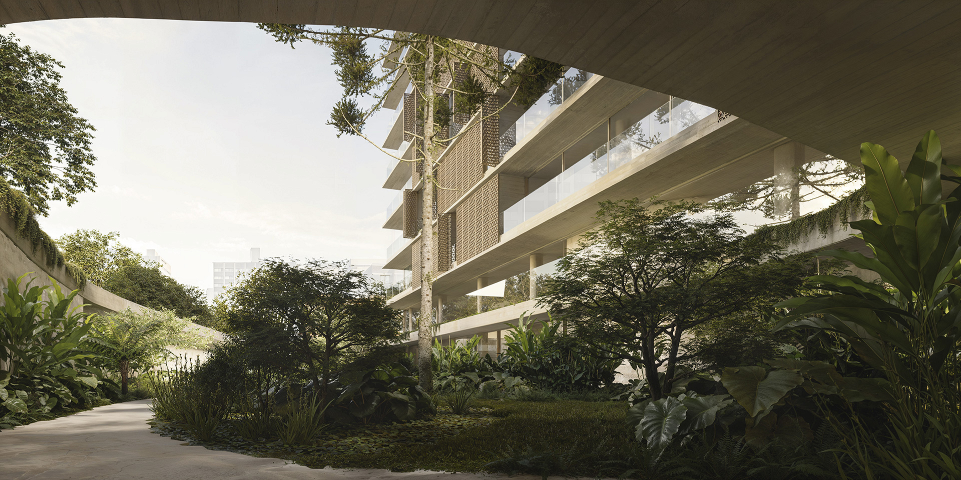 Integrado à arquitetura, o paisagismo compõe núcleos de bem-estar, mindfullness e lazer, onde o verde predomina e evoca o essencial.
